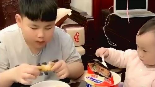 “舅舅,你快吃啊,我快要赢了!”侄女一边吃一边催促着舅舅。舅舅也不甘示弱,一边吃一边逗侄女:“你这个小家伙,这么快就要赢了,我可不能输给你。”